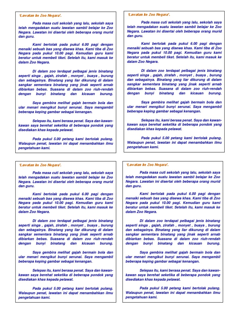 Contoh Bina Ayat Melawat Ke Zoo Tahun 6